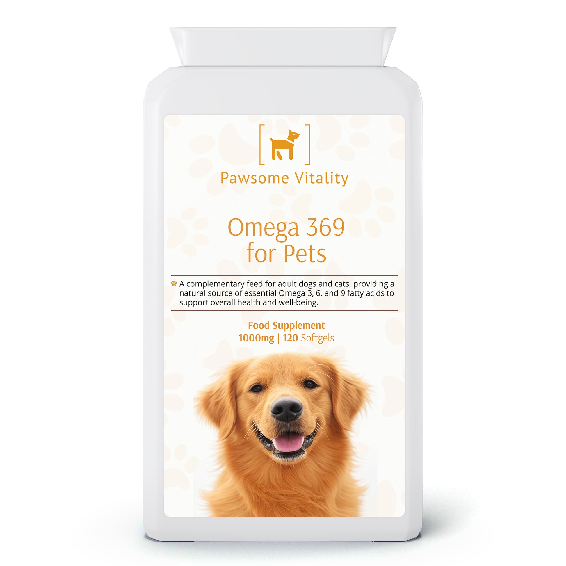 Pawsome Vitality Omega 369 is a premium complementary feed providing a balanced natural source of Omega-3, Omega-6 and Omega-9 fatty acids to help support overall health and wellbeing in adult dogs and cats.